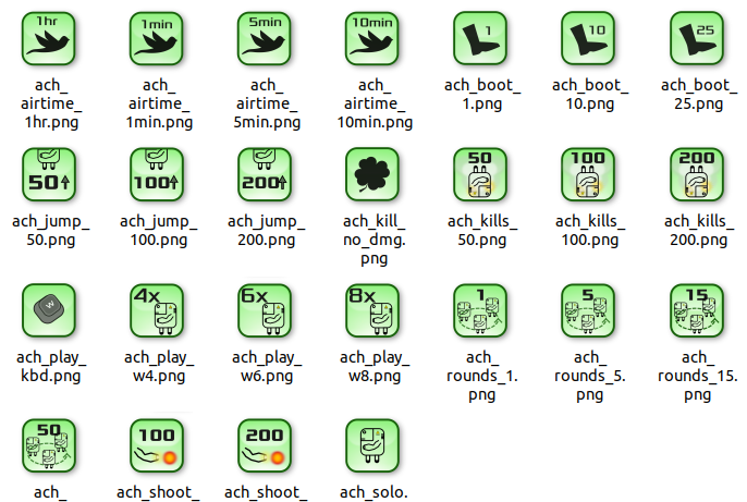 - I’ve added all the achievements to Steam. See image below of the achievement icons. I’ve almost got them all working in code as of this post, I just need to test them to make sure they all work. It was made quite easy thanks to a Godot addon: https://github.com/samsface/godot-steam-api (no need to build Godot from scratch with Steam SDK built in it)
