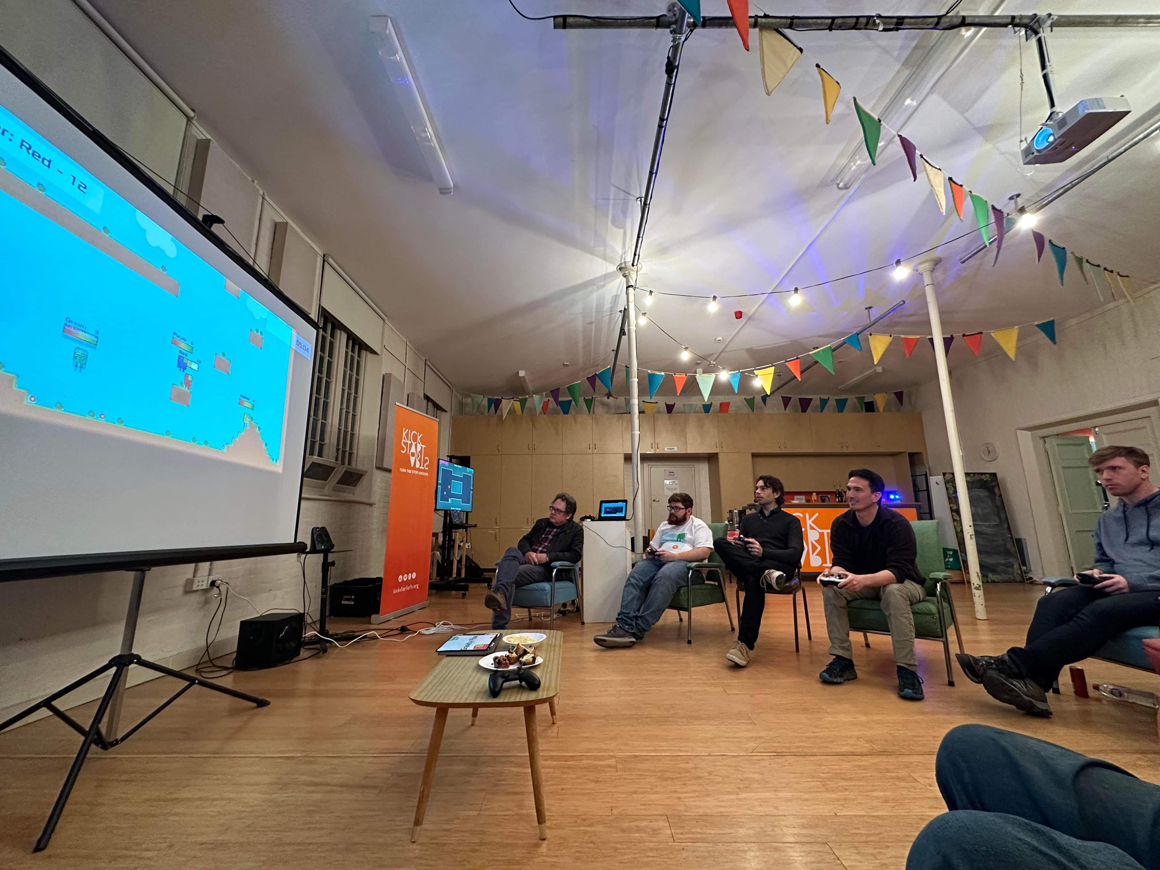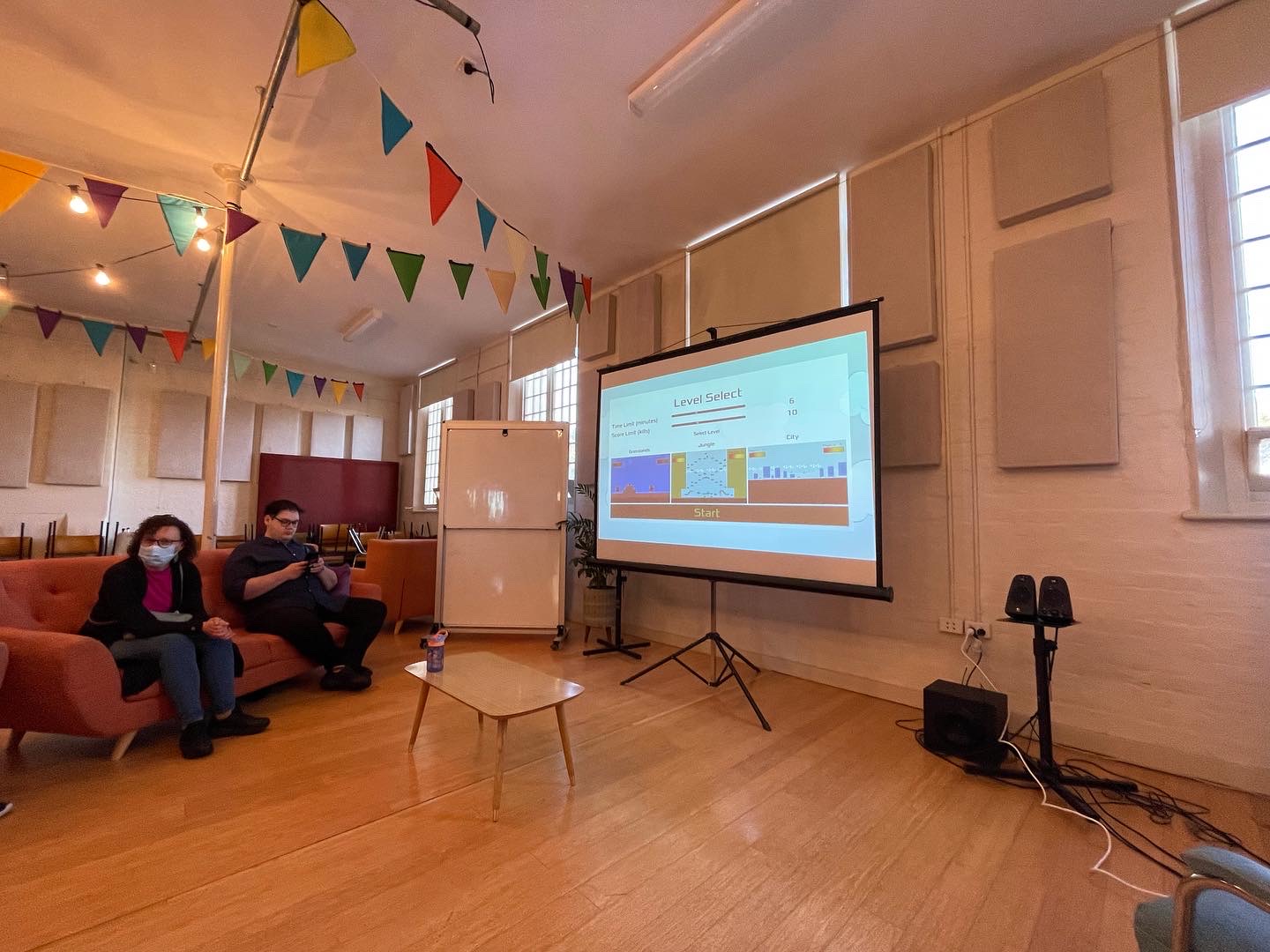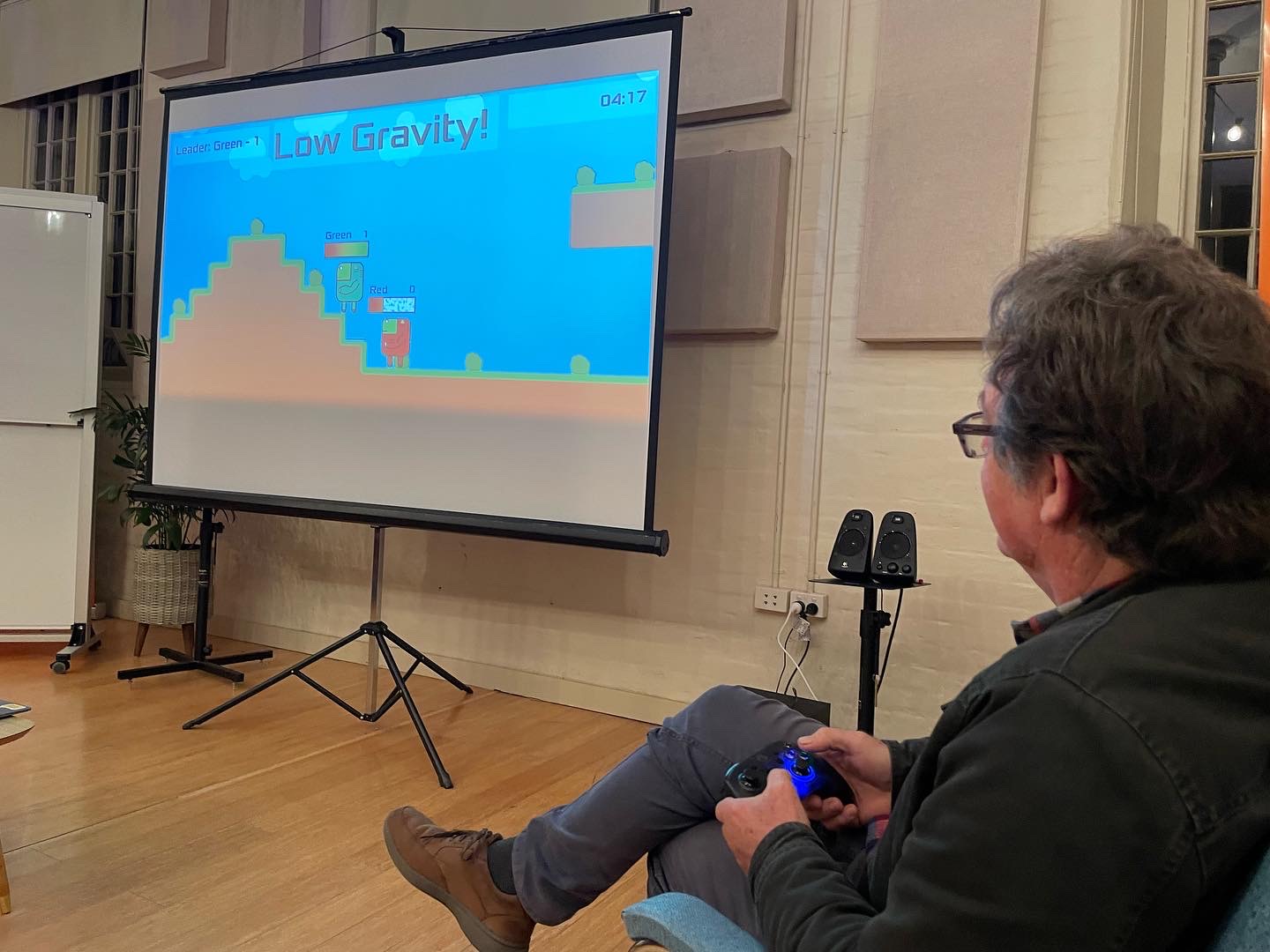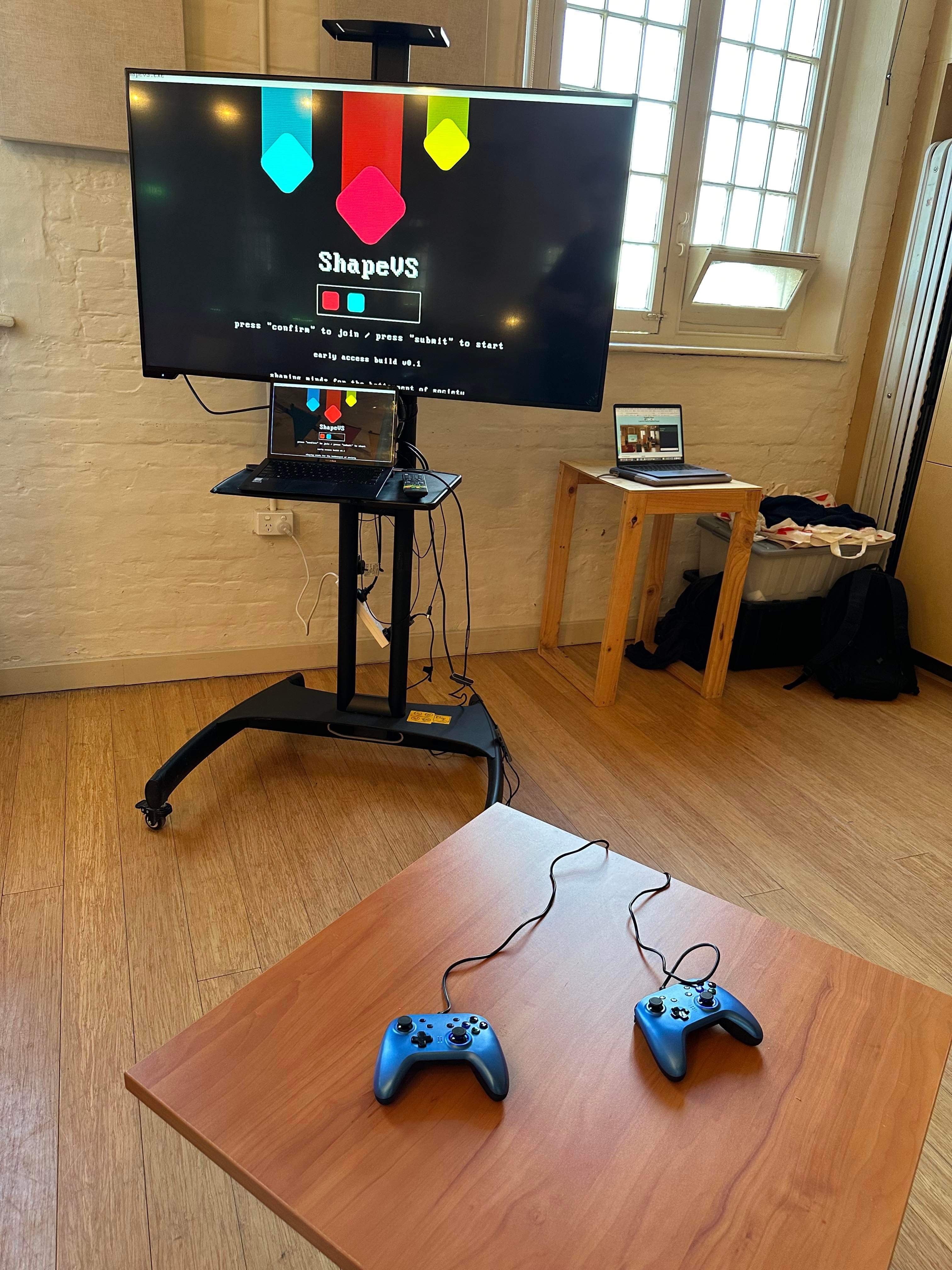 Kickstart Arts was a pretty decent venue, actually kinda perfect for this event for a few reasons. It had two screens, a projector for my game and a TV for ShapeVS. A bar kind of thing for the ample amount of non-alcoholic and alcoholic drinks I brought. The lighting was perhaps a little too bright for my laser light show projector I brought. Oh well, great excuse to buy it. Ample parking. A little tricky to find the entry, but everyone did without having to call me. The venue has a very “old school” vibe about it. Relaxed and rustic. While being upbeat and friendly. The venue organiser, Stefan was a great help and introduced me to the space very well. I hope to work with him and KSA again in the future for other stuff.