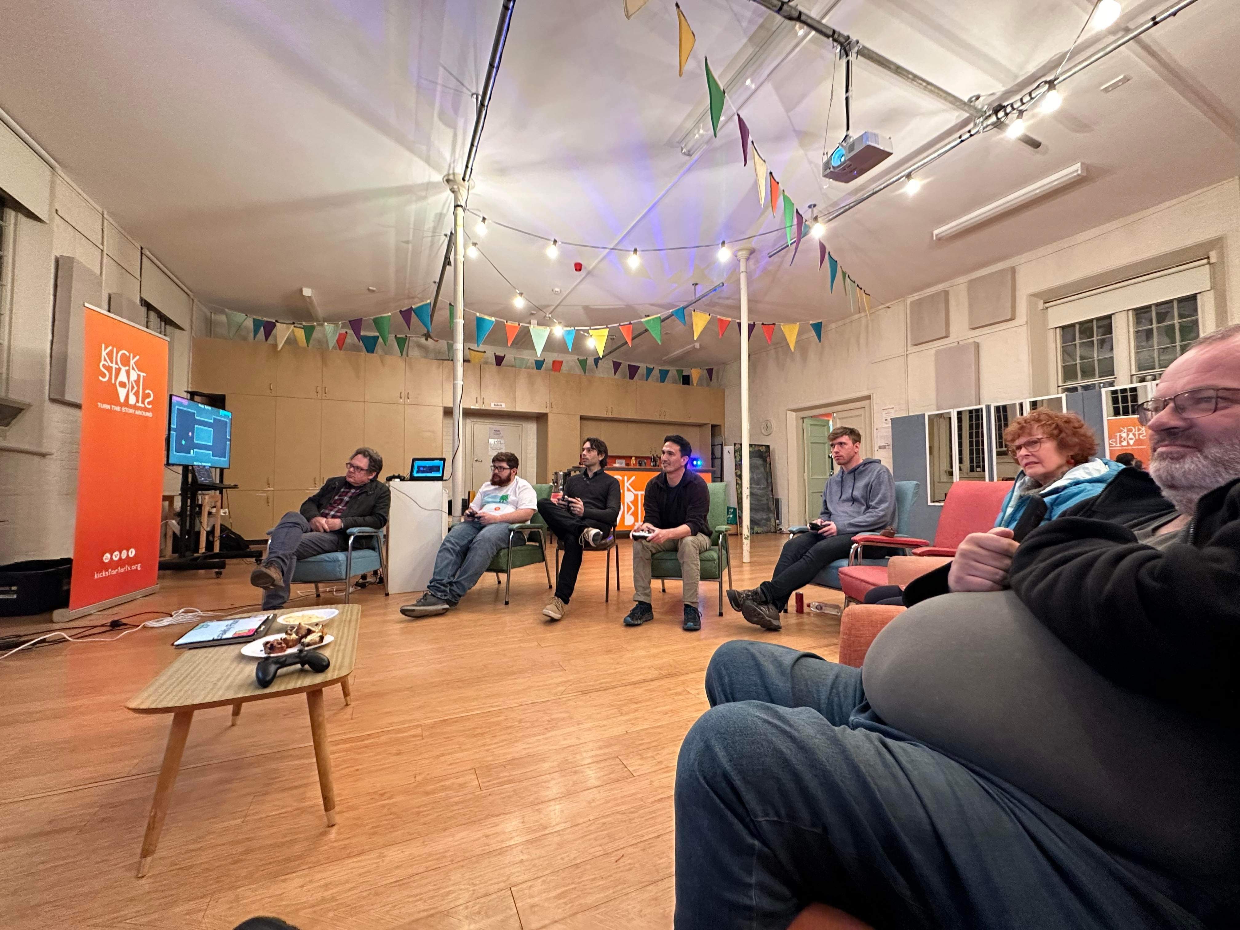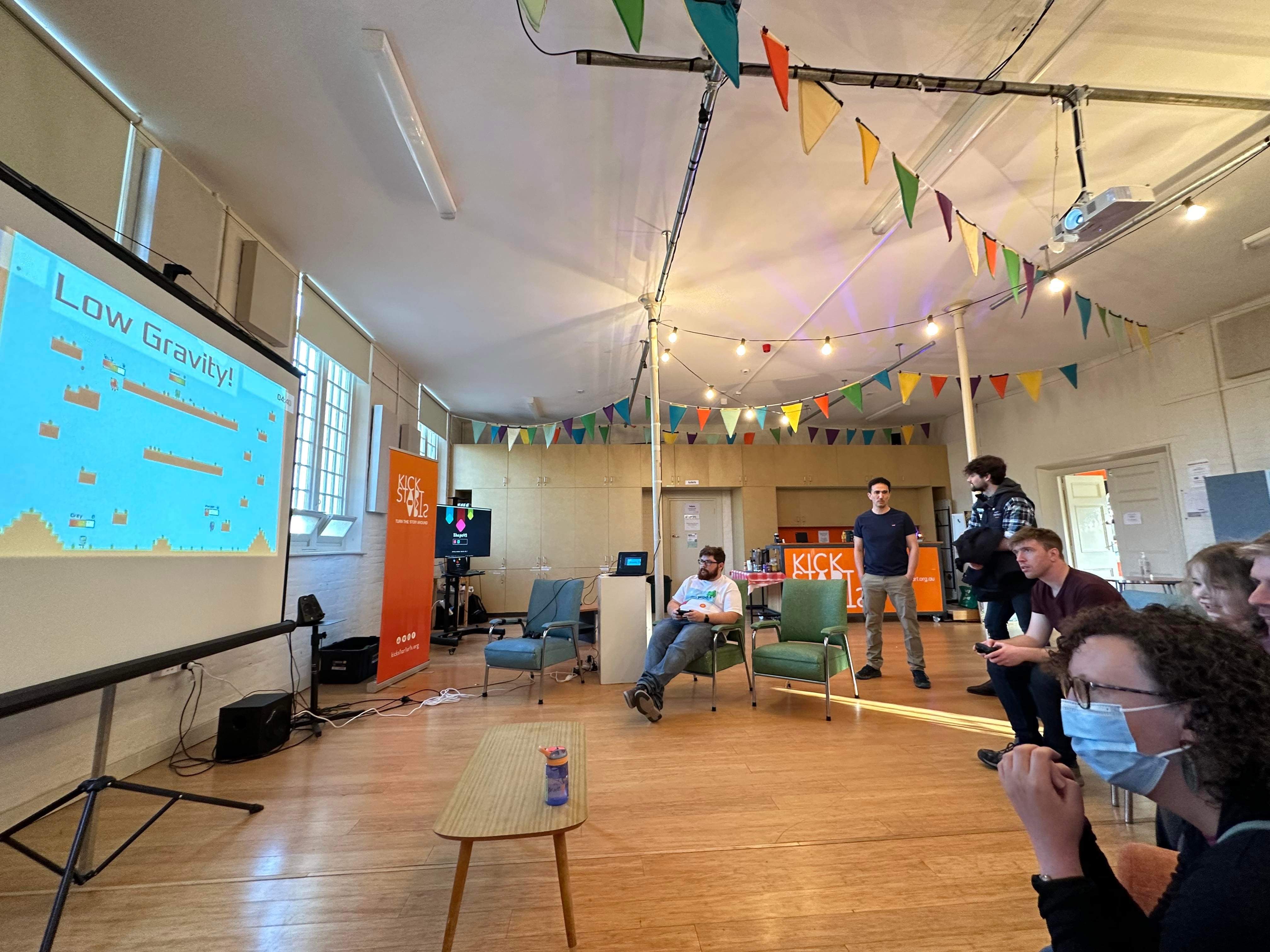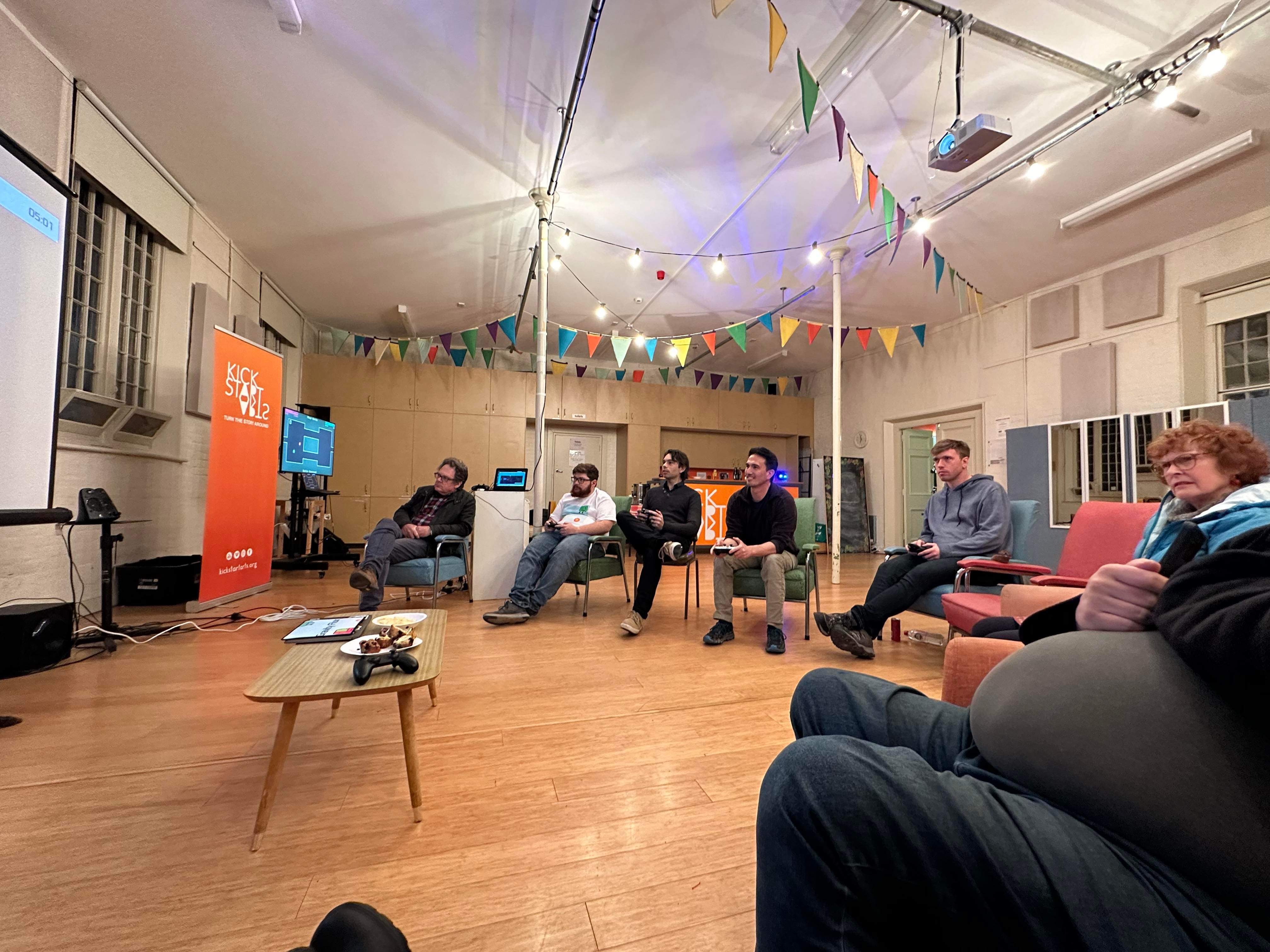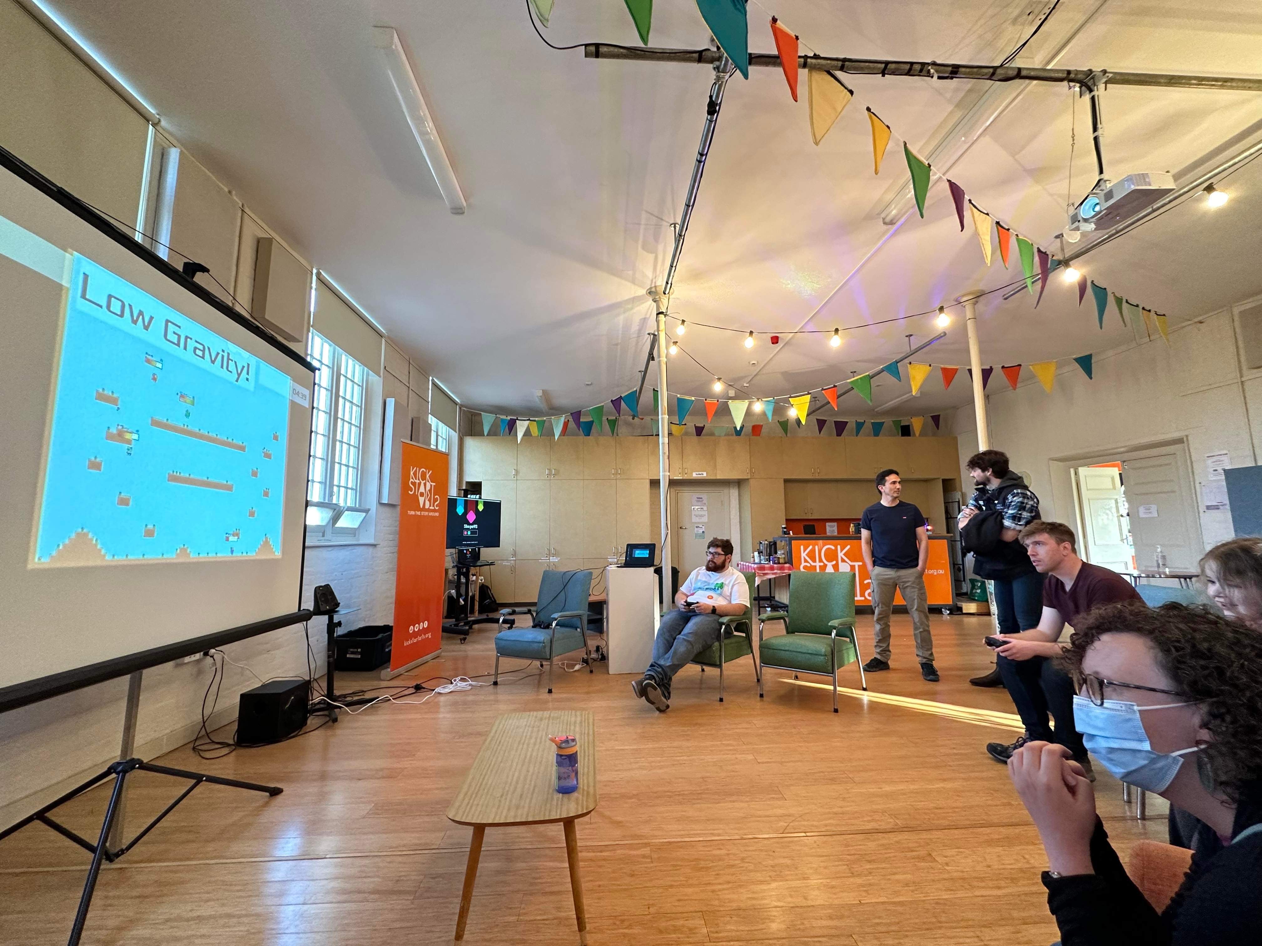Kickstart Arts was a pretty decent venue, actually kinda perfect for this event for a few reasons. It had two screens, a projector for my game and a TV for ShapeVS. A bar kind of thing for the ample amount of non-alcoholic and alcoholic drinks I brought. The lighting was perhaps a little too bright for my laser light show projector I brought. Oh well, great excuse to buy it. Ample parking. A little tricky to find the entry, but everyone did without having to call me. The venue has a very “old school” vibe about it. Relaxed and rustic. While being upbeat and friendly. The venue organiser, Stefan was a great help and introduced me to the space very well. I hope to work with him and KSA again in the future for other stuff.