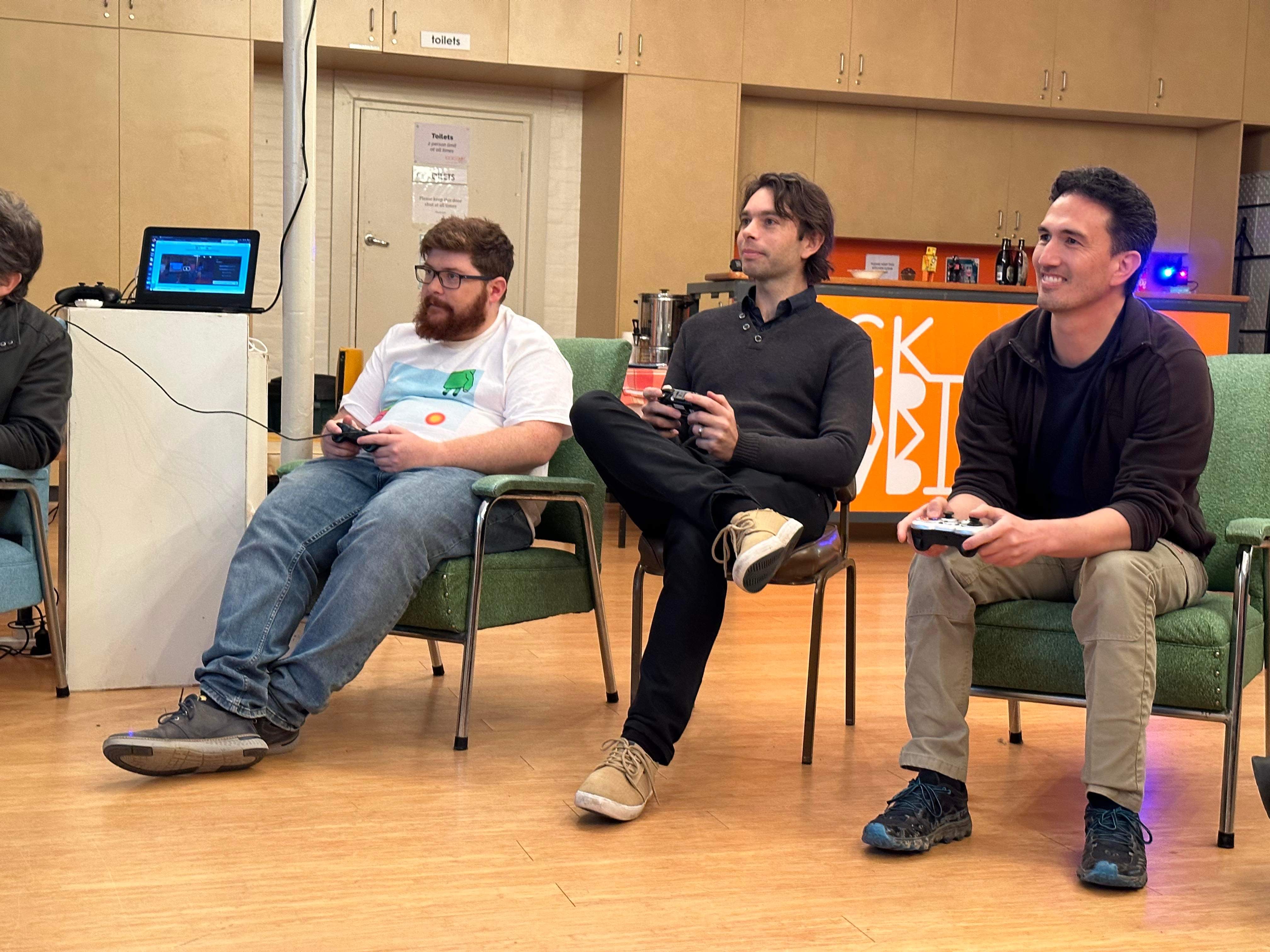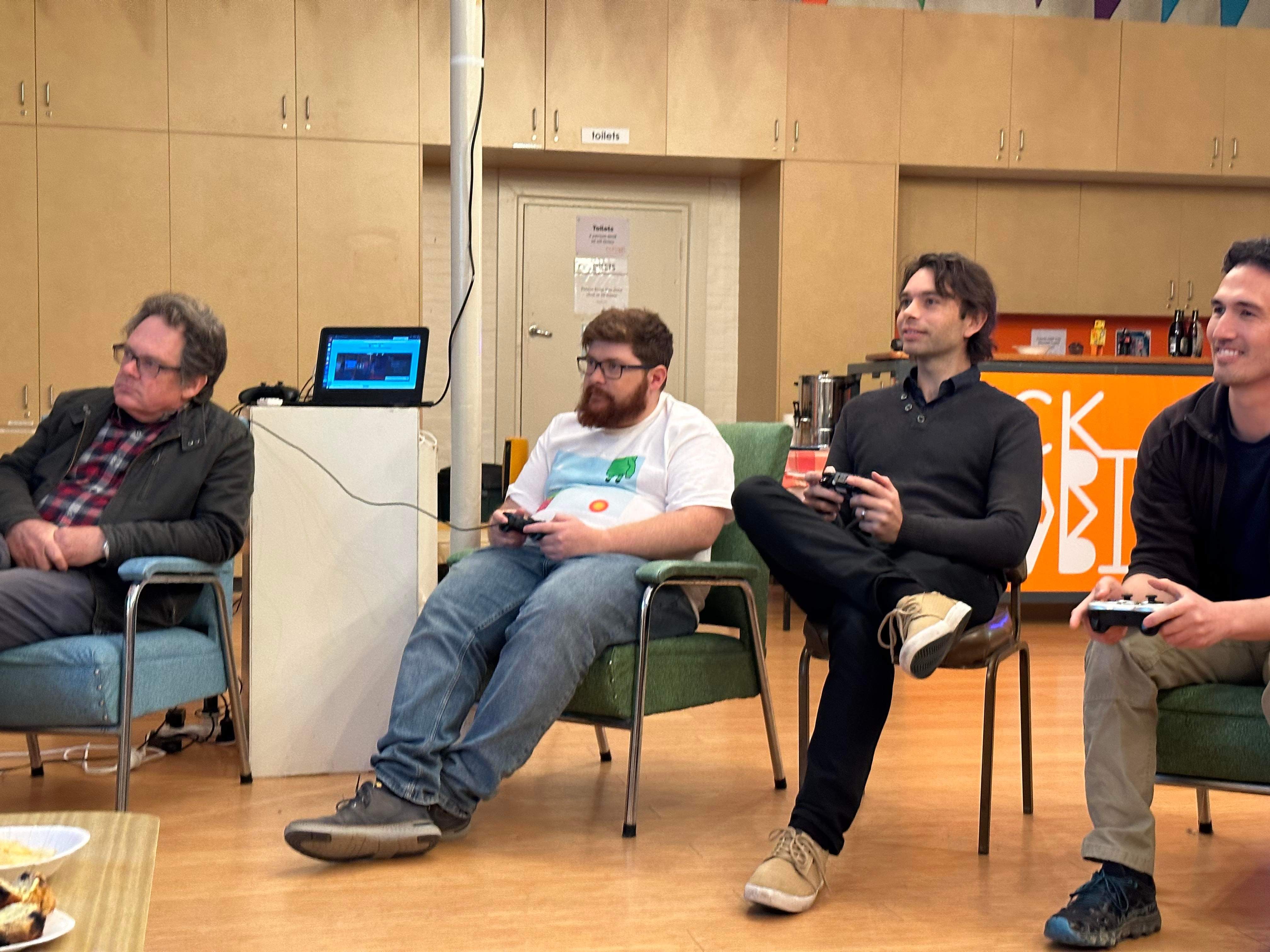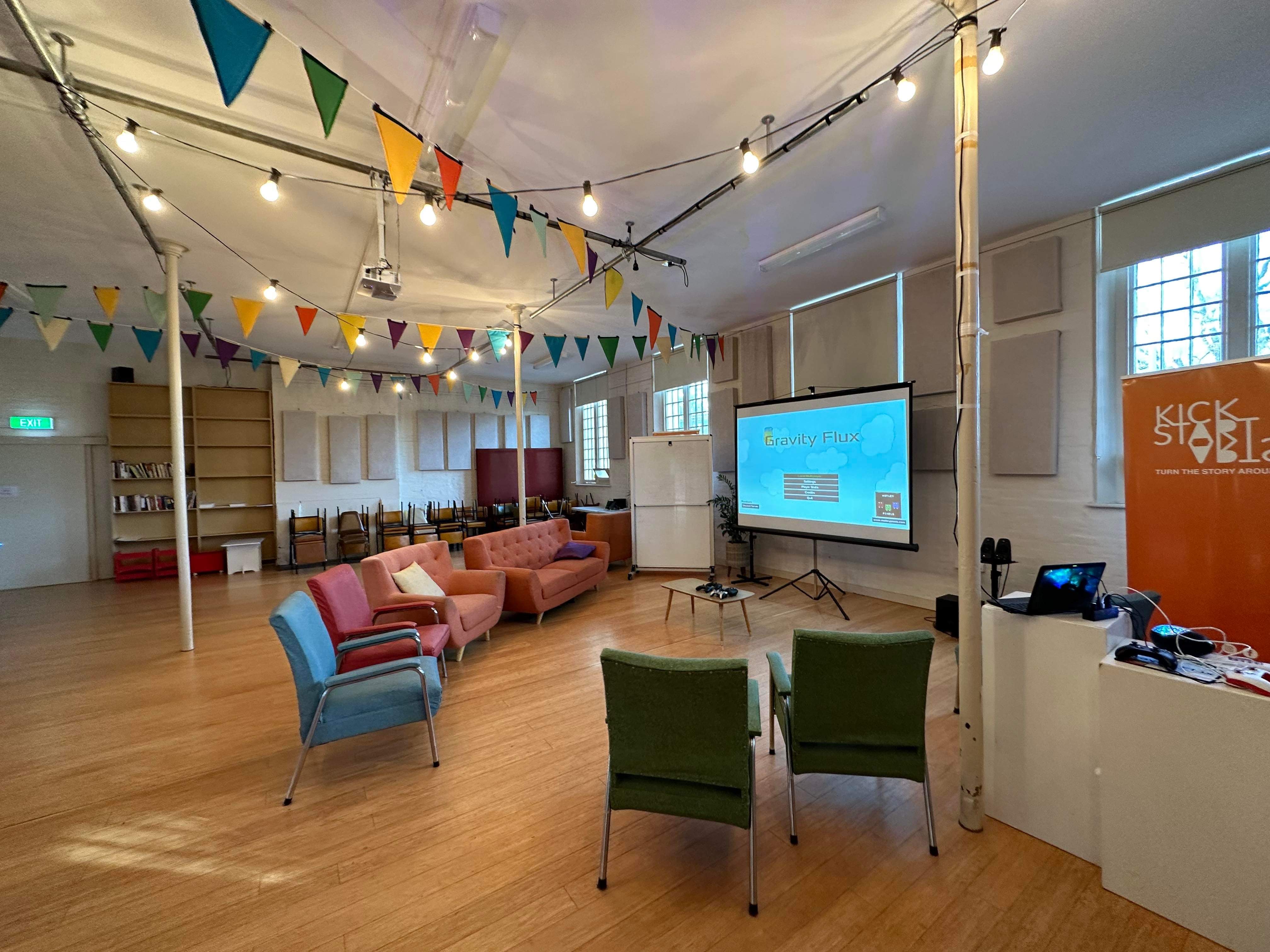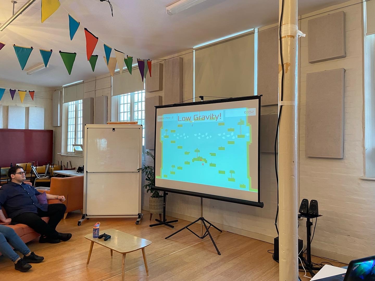Kickstart Arts was a pretty decent venue, actually kinda perfect for this event for a few reasons. It had two screens, a projector for my game and a TV for ShapeVS. A bar kind of thing for the ample amount of non-alcoholic and alcoholic drinks I brought. The lighting was perhaps a little too bright for my laser light show projector I brought. Oh well, great excuse to buy it. Ample parking. A little tricky to find the entry, but everyone did without having to call me. The venue has a very “old school” vibe about it. Relaxed and rustic. While being upbeat and friendly. The venue organiser, Stefan was a great help and introduced me to the space very well. I hope to work with him and KSA again in the future for other stuff.